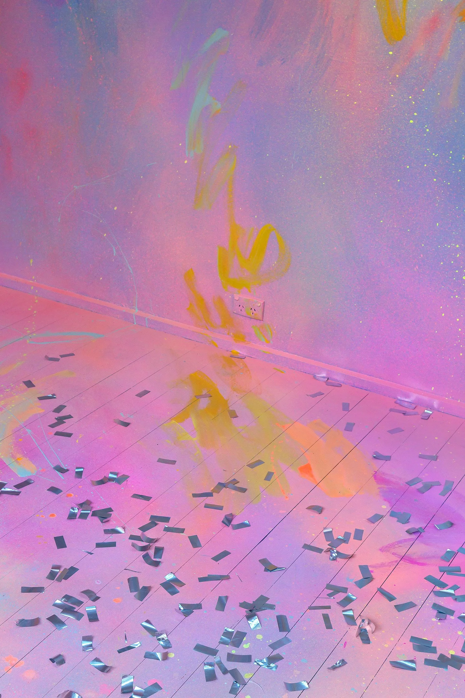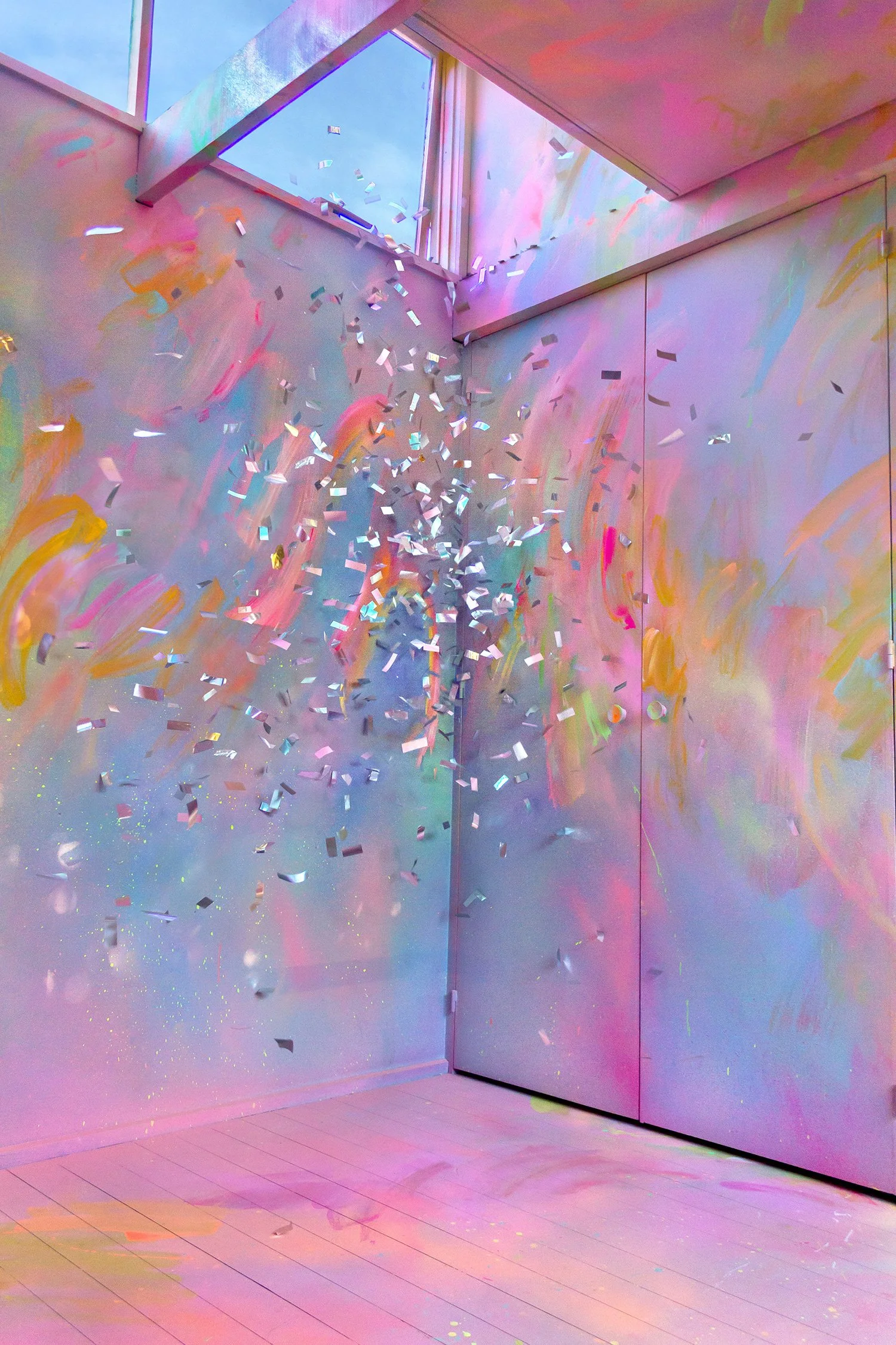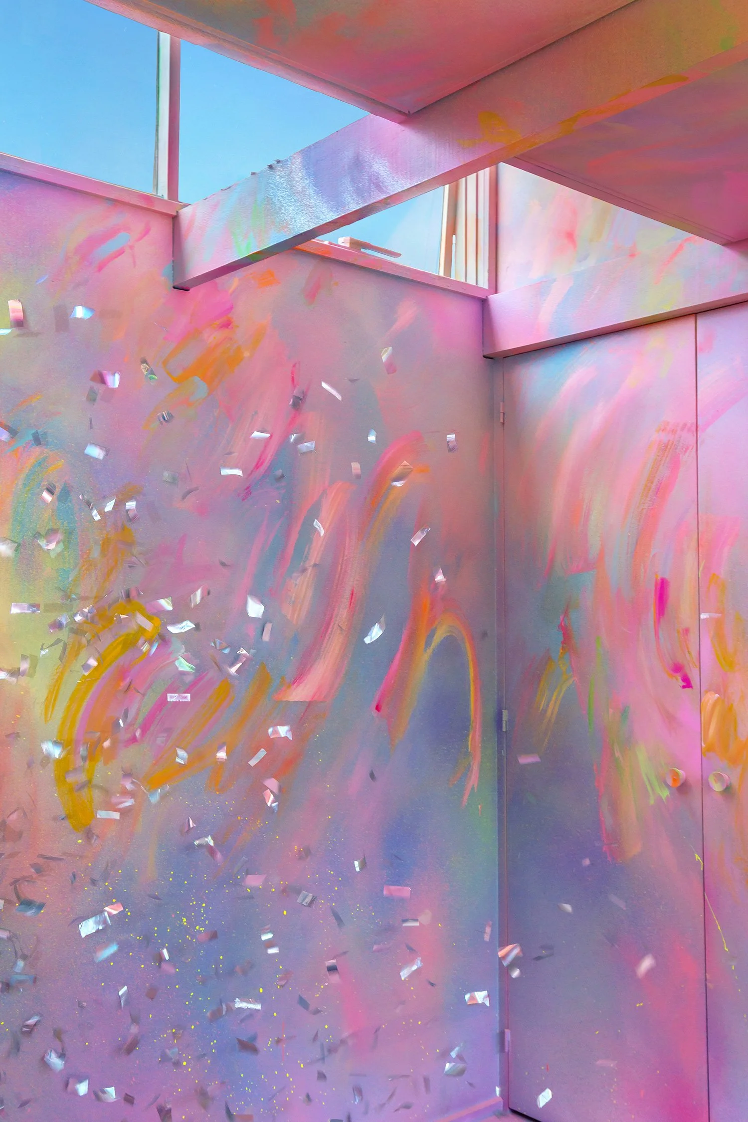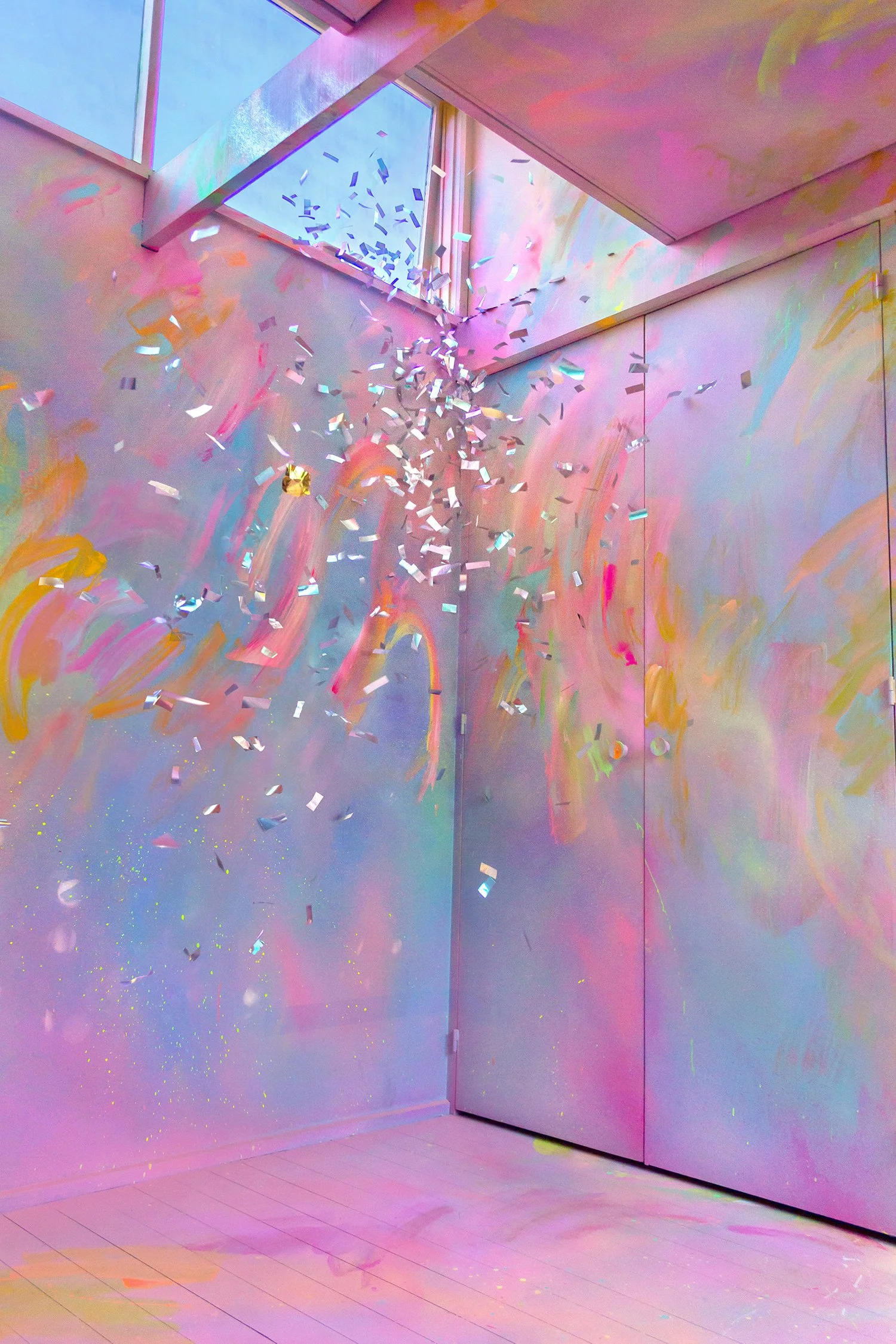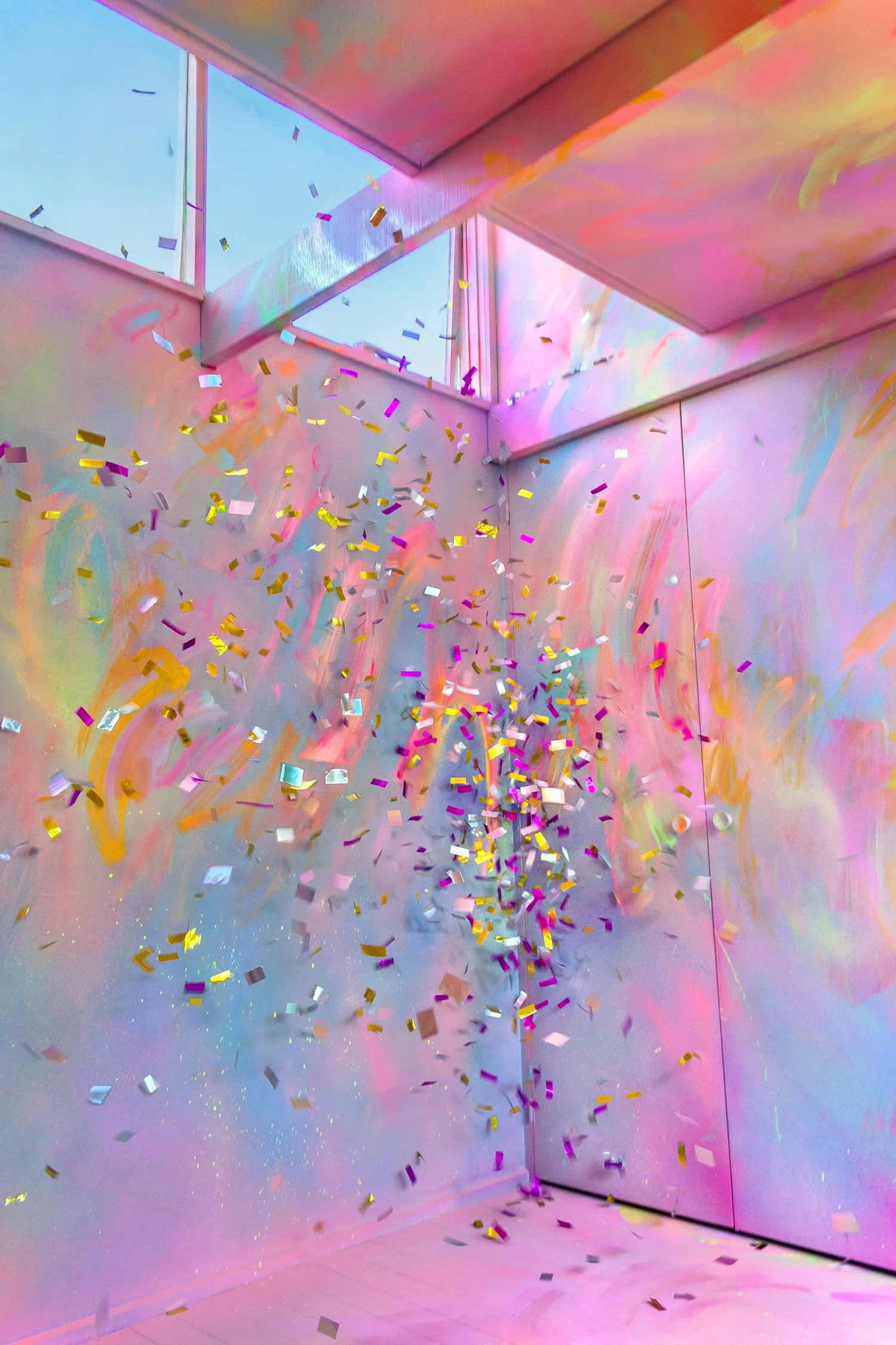 “The metallic confetti brings a sense of party, joy and celebration to the atmosphere of ‘HEART.’ Serendipitously, it also resembles glass shattering. The flying foil feels like a beautiful symbolic representation of a closed heart being opened, the protective walls broken through, as it’s filled with the power of love and joy.