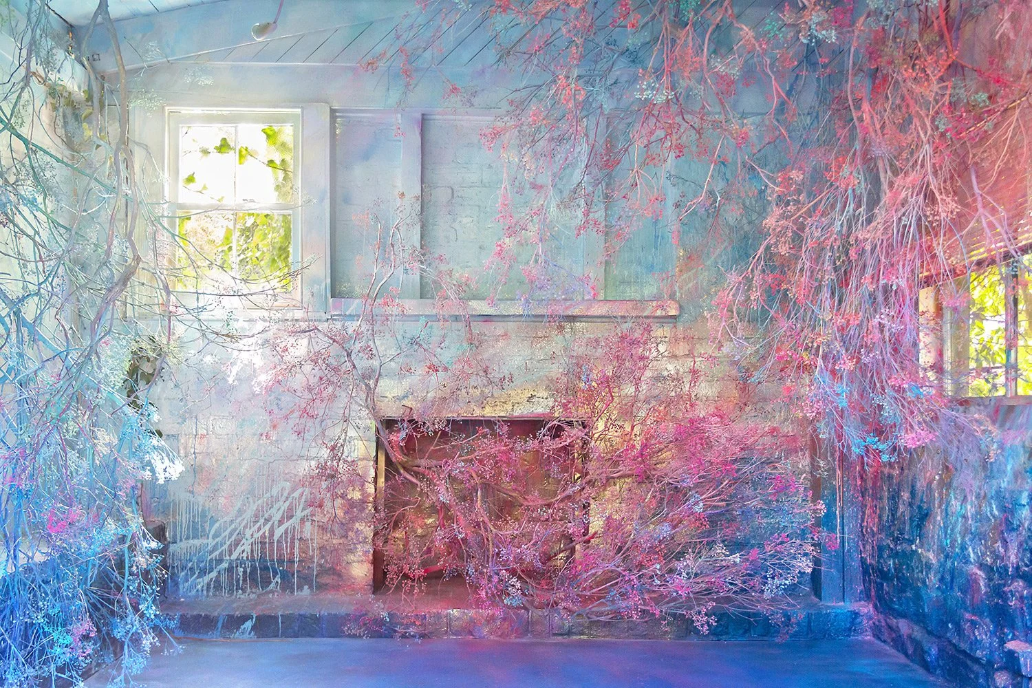 Eventually I evolved from my foundational creative medium of collage, as I was craving working on a large scale and with paint. I never expected I’d be able to paint the kind of texture and understory I’d uncovered with my collages but here, with each layer leading, I’d found my way back to those images, now on a larger more immersive scale.