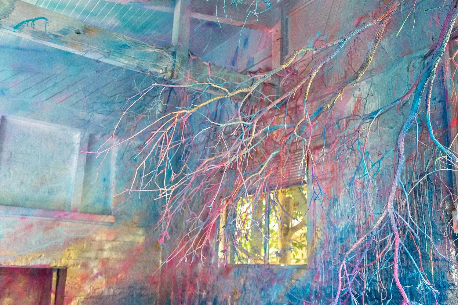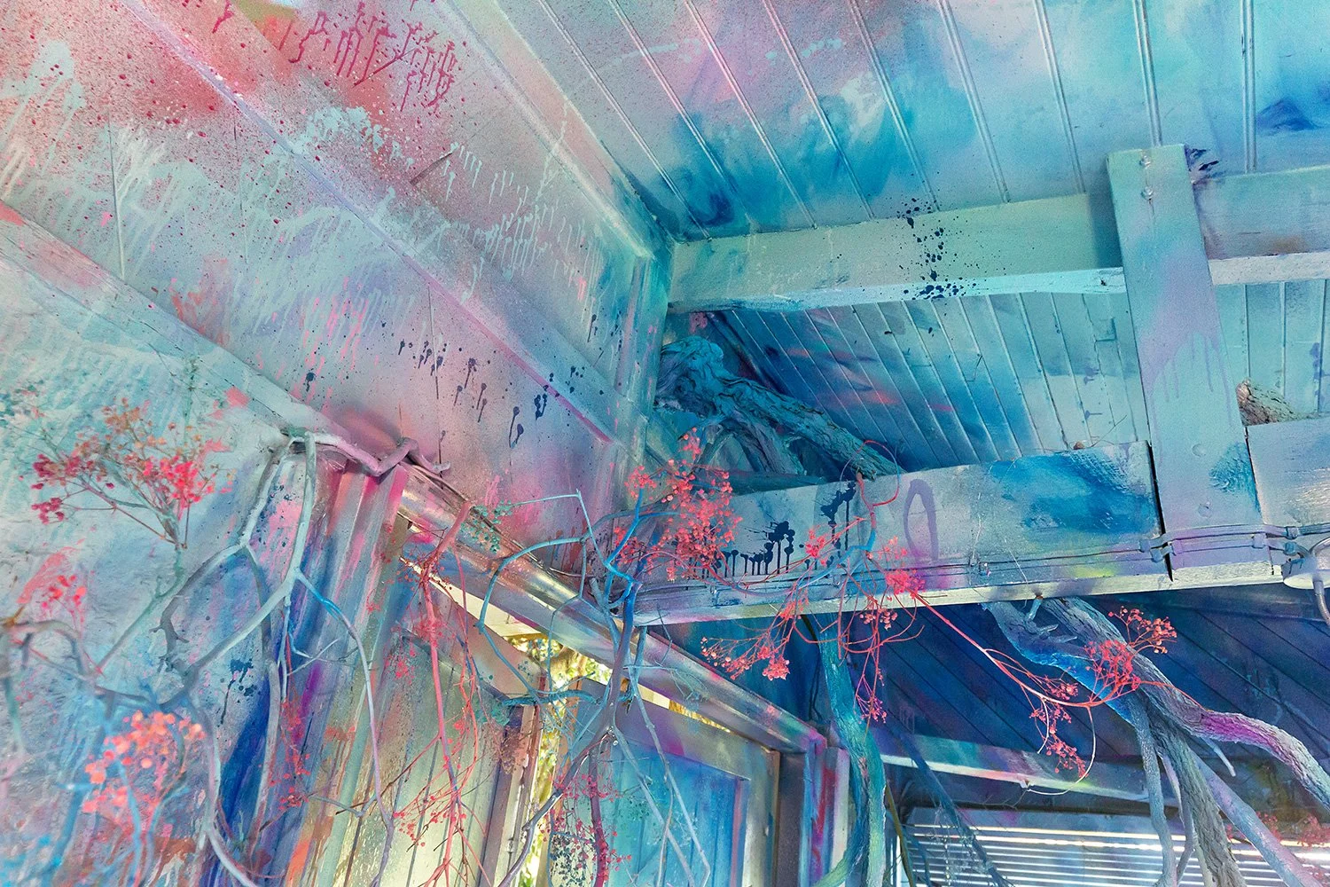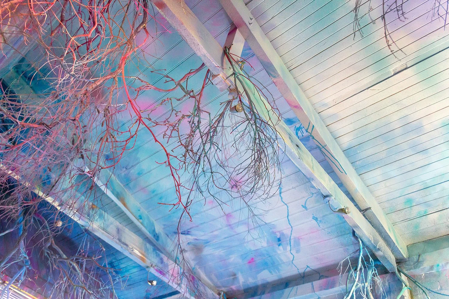 Florescence is an immersive mural project that organically became the next chapter to, The End of Shame. Roots enter the underground story and provide a place for new life to grow, transforming the atmosphere from a barren iceberg of shame into a space of beauty and blooming.